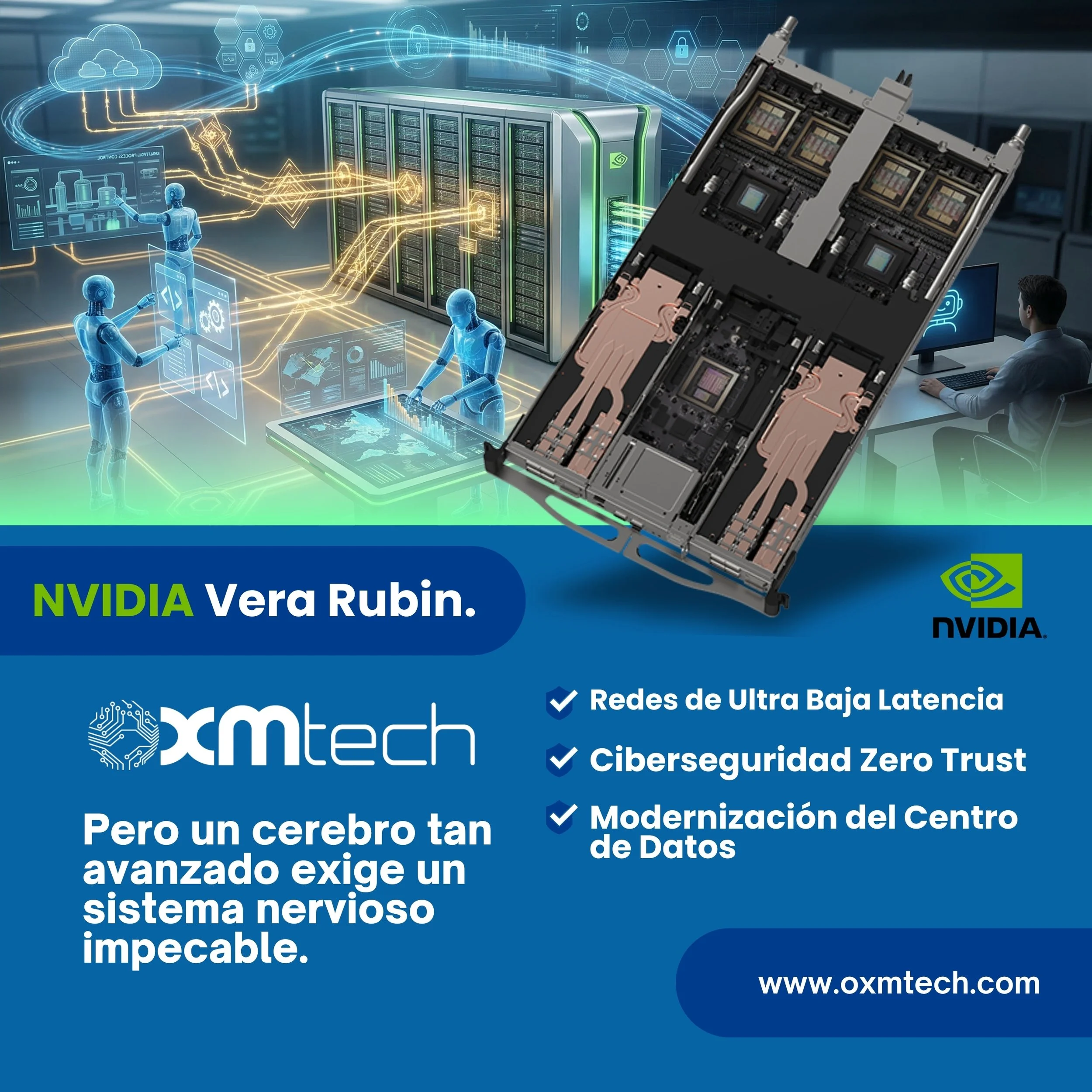 En OXM TECH, somos arquitectos expertos y consultores especializados en el diseño de infraestructuras críticas y ecosistemas de alta disponibilidad. Entendemos cómo entrelazar el poder de NVIDIA con la resiliencia de las redes modernas y la seguridad impenetrable de arquitecturas Zero Trust.