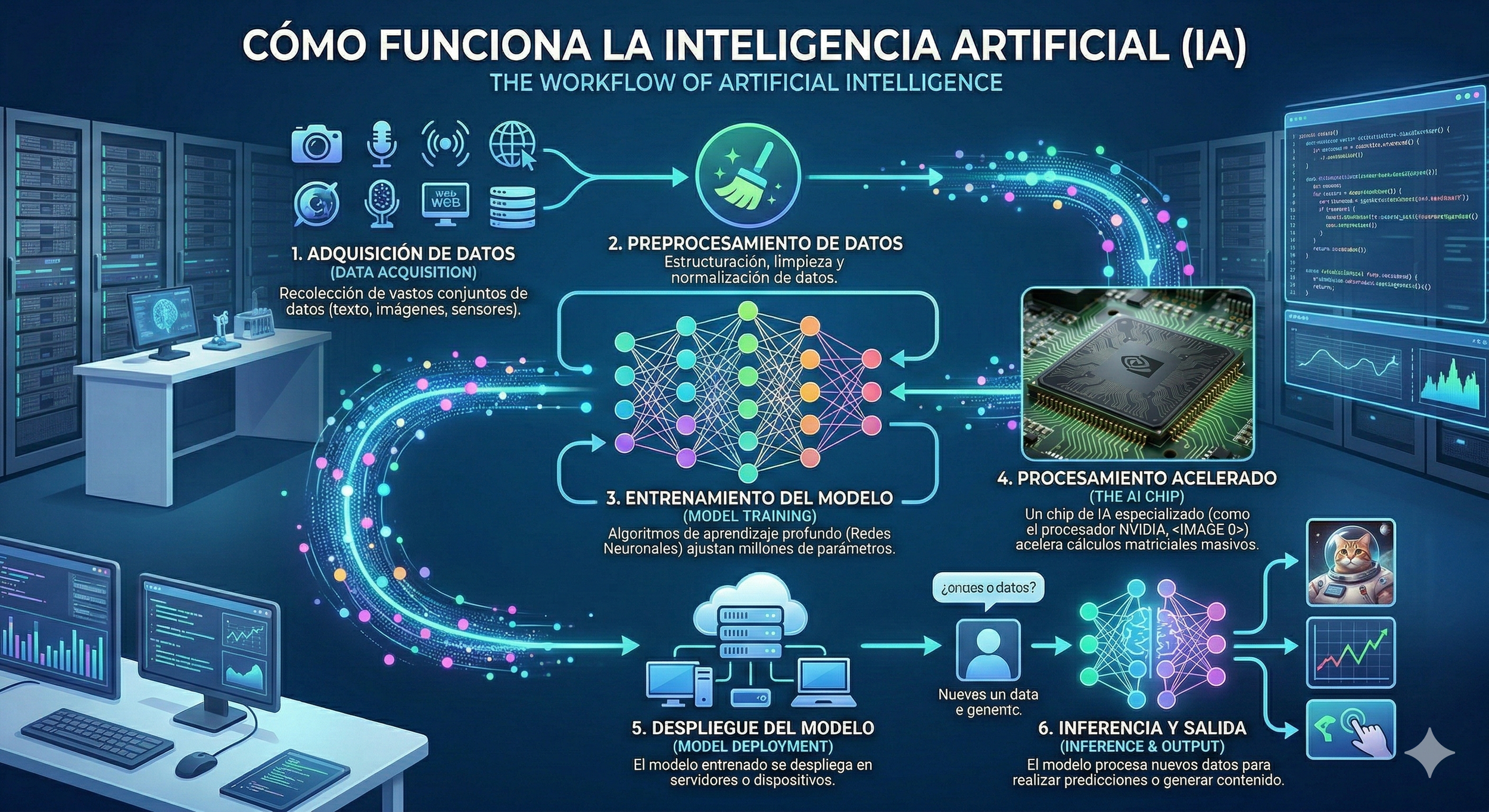 Para entender por qué necesitamos una estructura de prompts específica, primero debemos comprender cómo "piensa" la máquina. Cualquier modelo de lenguaje moderno opera utilizando redes neuronales y algoritmos de procesamiento del lenguaje natural.